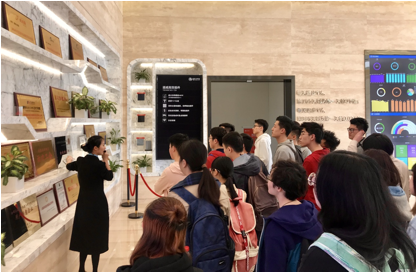 接下来,同学们在工作人员的带领下参观了全球自动化程度最高(100%)、单车间产能规模最大的高效晶硅电池线项目的S2工厂。车间里专门设置了一条参观通道,同学们在这里可以直接清晰地看到工厂的实时生产情况。讲解员为同学们依次介绍生产光伏电池板的六道工序:制绒,扩散,刻蚀,退火,PECVD(增加阳光穿透率),丝网印刷。同学们边听边看边思考并结合专业知识积极与讲解员探讨。