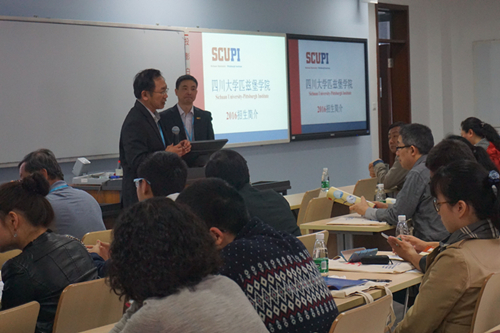 【Admission Policy】 Professor Minking Chyu, Dean of Sichuan University – Pittsburgh Institute (SCUPI), delivered a welcome speech to all attendants. Professor Jie Wang, Associate Dean of SCUPI, Professor Larry Shuman, Senior Associate Dean of Swanson School of Engineering, Professor Mary Besterfield-Sacre, Director of Engineering Education Research Center, Professor Renee Clark, Director of Assessment at Engineering Education Research Center, Xiu’E Jia, Chief of Admission at Admission and Employment Office of Sichuan University, Ai’Min Liao, Deputy Secretary of College of Life Science, student and faculty representatives of SCUPI, senior high students, and their parents attended the session.